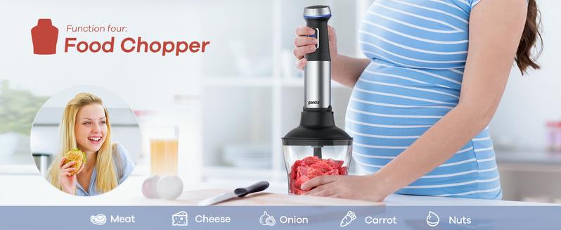 Ganiza Immersion Blender 5 in 1 Hand Blender Max 1000W Heavy Duty Motor, 16 Speed Mode Handheld Blender Stainless Steel Blade With 800ml Mixing Beaker, 600ml Chopper, Whisk and Milk Frother
