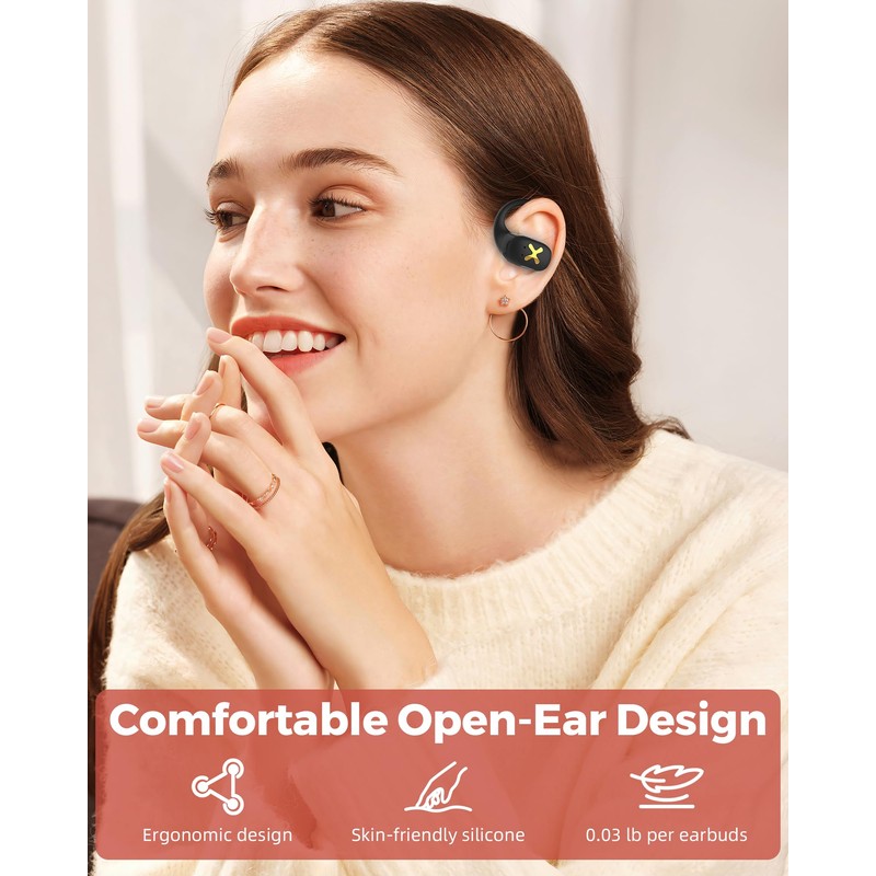 - Comfortable Open-Ear Design: The ergonomic design provides an excellent wearing experience, aligning perfectly with the natural contours of your ears. The skin-friendly silicone is comfortable and safe for all-day use, ensuring a secure fit that won't slip.