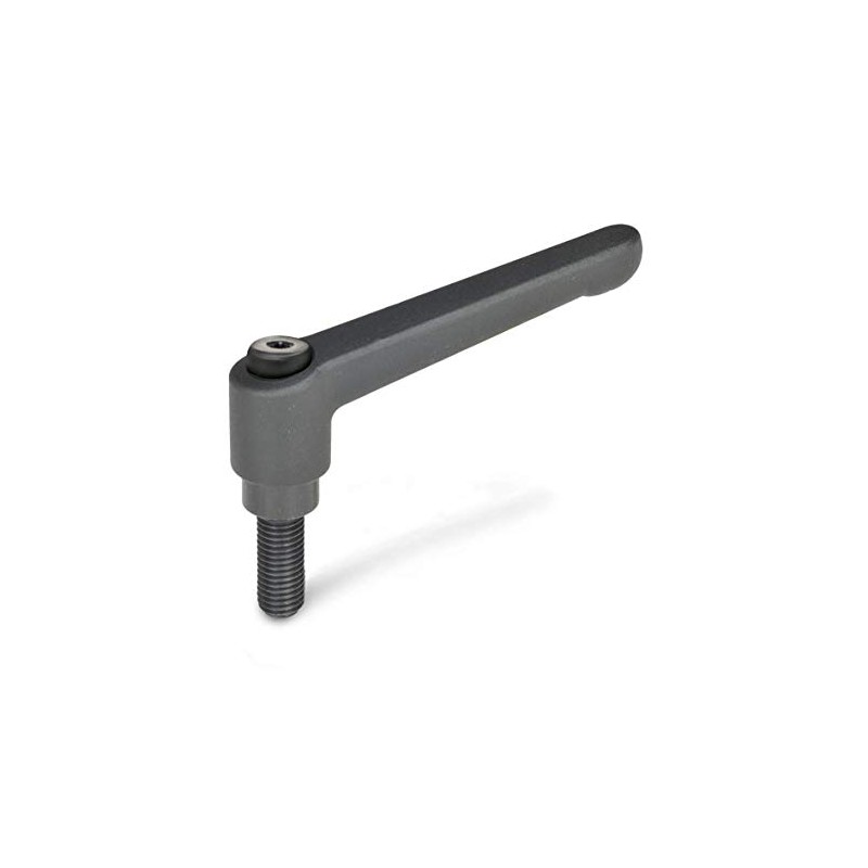 Ganter Normelemente Adjustable clamping lever with threaded screw - GN 300-78-M12-80-SW | Handle length: 78 mm | Burnished steel screw | Handle die-cast zinc black plastic coated | Pack of 1