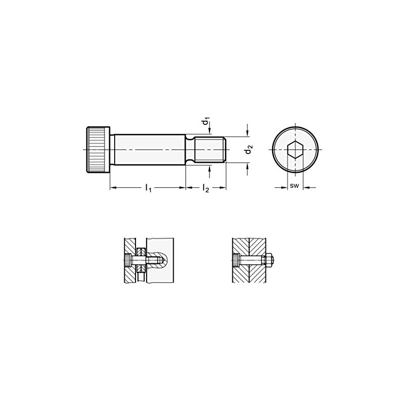 Ganter Normelemente Fitting Screws with Collar ISO 7379-12-M10-55, Mounting Diameter 12 mm, Steel, Pack of 5