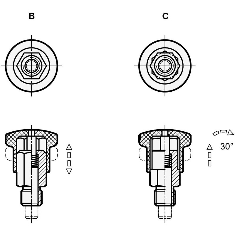 Ganter Normelemente Locking Bolts L Small Design - GN 822.6-6-M10-B | Shape B...
