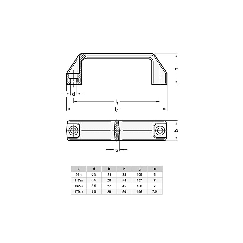 - Length l1: 179 mm; width b: 28 mm; height h: 50 mm; bore diameter: 8.5 mm