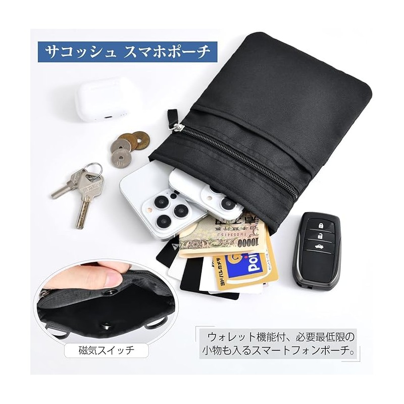 - (Product Details) Size (H x W x D): Approx. 7.9 x 5.7 x 0.4 inches (20 x 14.5 x 1 cm); Weight: Approx. 4.2 oz (1Comes with a shoulder strap (140 cm). Specifications: 2 front pockets, 1 main compartment, 1 back pocket, magnetic closure system