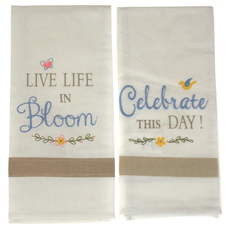 Ganz Celebrate This Day & Live Life In Bloom Embroidered Towel Set 2 White 15x22