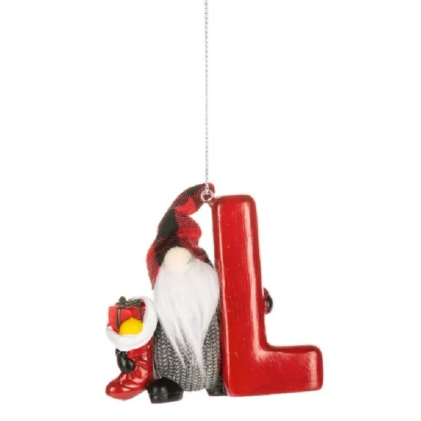 Ganz Resin GNOME Monogram Initial Christmas Ornament w/Stocking "L" 3" x 2 3/4"