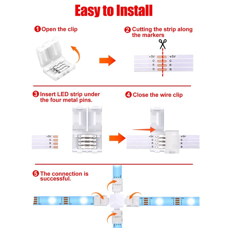 - Easy Installation: The connectors allow for quick and hassle-free installation of LED strips, ensuring a seamless and professional-looking setup
