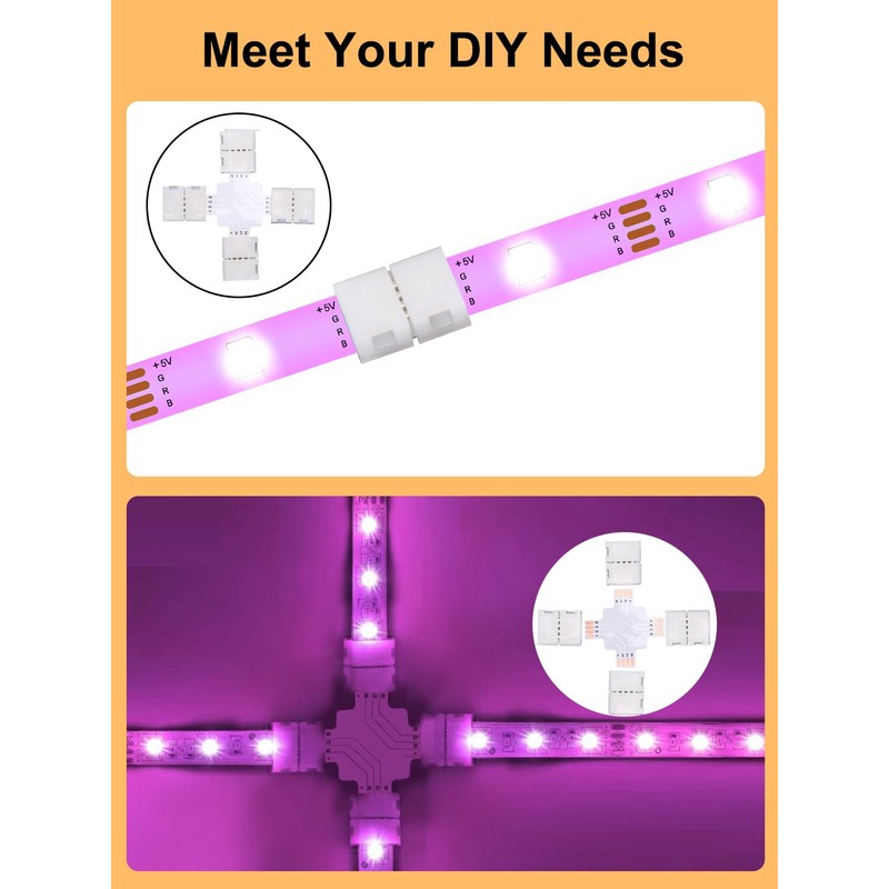 - Versatile Connectors: This set includes 5 cross-shaped connectors and 20 clips, perfect for connecting and securing 8 mm width RGB LED strip lights