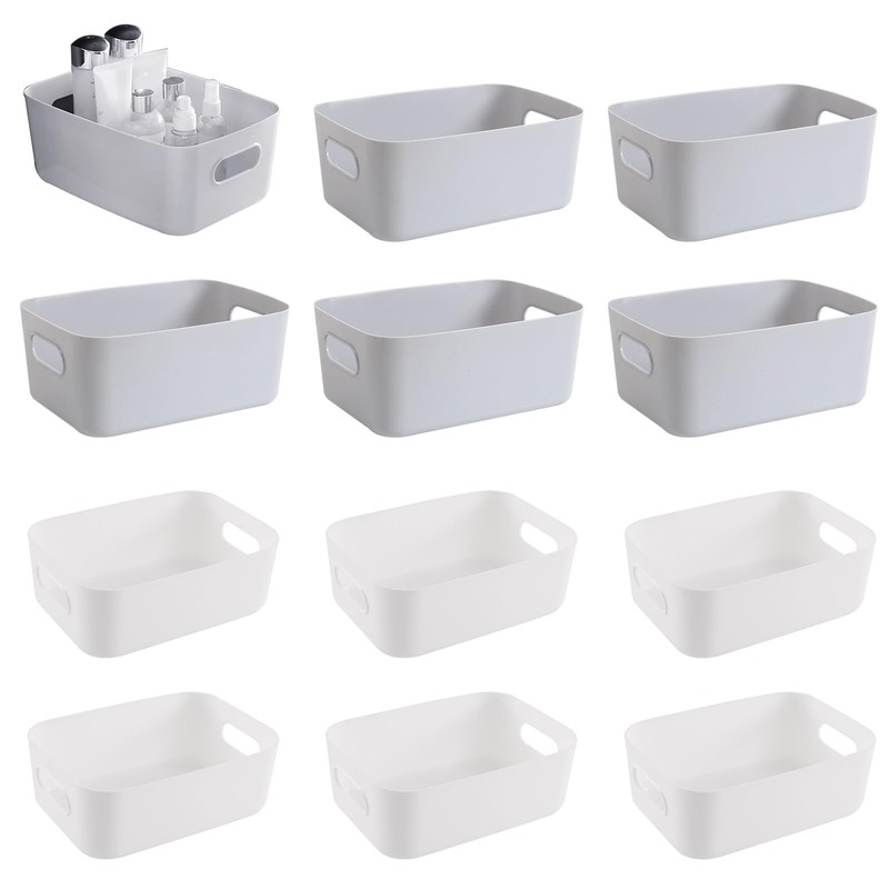 Package Includes: 10 Pieces of white plastic storage boxes baskets each measures at 20 x 13.5 x7.5cm/7.5x5.3x5.7 inches, which is a perfect size for using as home, office,bathroom, kitchen cupboard storage organiser or shelves baskets