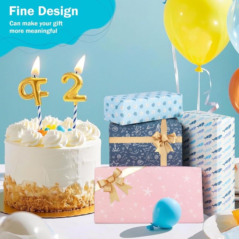 Featuring favourable nautical patterns like anchors, conch, stripes, and whales, this birthday wrapping paper roll perfectly captures the essence of celebration. Its colors and beautiful designs not only enhance your gift but also add a personal touch that shows you care.