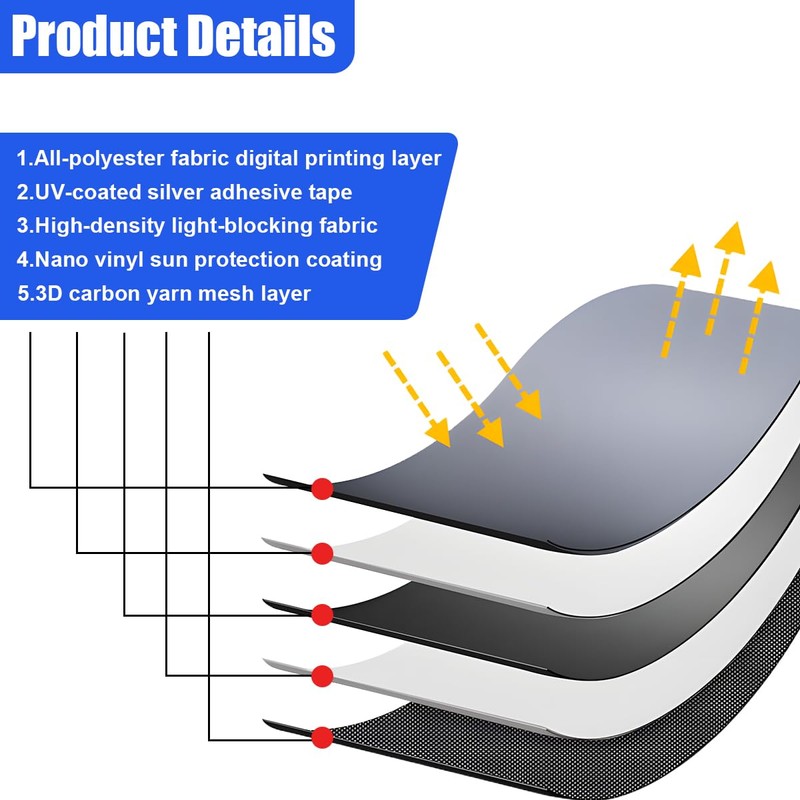 These window shades are made of high-quality polyester fiber material, durability, sun protection, and privacy, providing a safer and more secure parking experience for car owners.