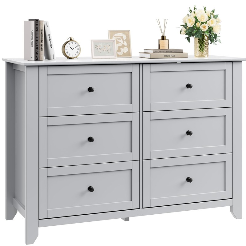 GAOMON 6 Drawer Dresser for Bedroom, Grey Wooden Dresser with Deep Storage Drawers & Metal Knobs, Modern Chest of Drawers for Bedroom, Entryway, Hallway, Kids Room