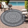 GAOMON 6 FT Round Outdoor Rug Outdoor Plastic Straw Patio Rug, Lightweight & Foldable Camping Carpet, Reversible Floor Mat for Picnic, RV, Porch, Deck, Balcony, Beach, Grey/White(Medallion)
