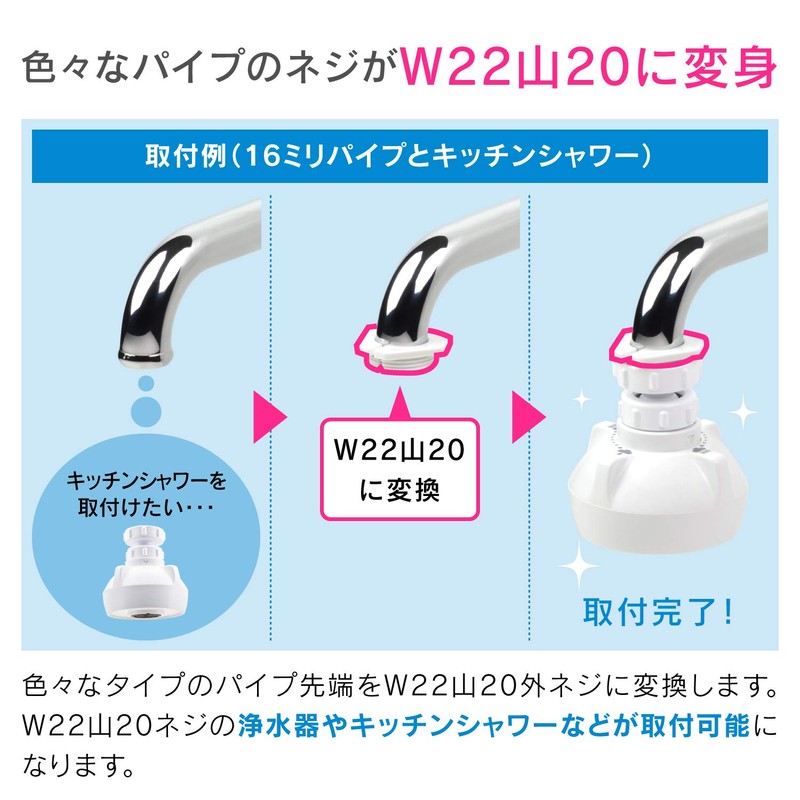 • Pipe that can be converted to W22 threads of 20: M24 x 1.0 inner screw pipe (KAKUDAI, Grohe, SAN-EI, etc.)