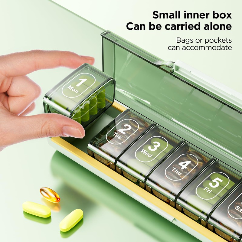GAONLY Moisture-Proof Weekly Pill Organizer, BPA Free Travel 7 Day Pill Box Case, Portable for Travel with Removable Individual Containers to Hold Vitamins, Supplements and Medication (Green)