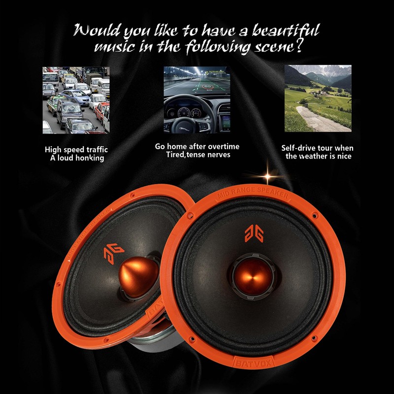 - Powerful Midrange Performance: The 8 Inch Midrange Loudspeaker with Orange Bullet design delivers an RMS power of 160W and a maximum power handling of 320W, with a peak power capability of 640 watts. This ensures robust midrange sound reproduction, perfect for filling any venue with rich, detailed audio.