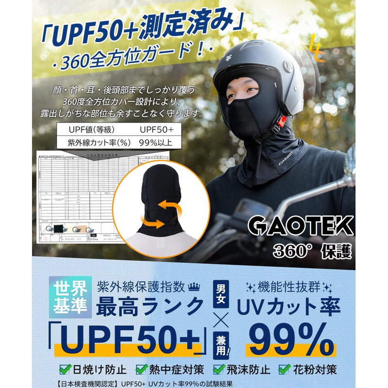 - [Riding Essential] The strongest combination of UV protection and cooling sensation. GAOTEK's summer balaclava is a must-have item for enjoying summer riding. Adopts high-performance fabric with UPF 50+ protection to block more than 99% of UV rays, protecting your skin even in strong sunlight and preventing sunburn and UV damage. In addition, the special ice silk material makes you feel cool and cool as soon as you put it on, and it has excellent breathability to reduce stuffiness, keeping you comfortable even when you sweat. Even after repeated washing, the UV protection and cooling function remain intact. It is also great for touring and cycling, as well as outdoor work and sports activities in the summer. A combination of functionality and comfort, the "strongest" summer balaclava provides excellent protection from UV rays and heat