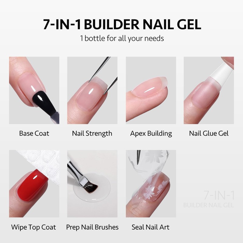 GAOY Clear Builder Gel for Nails, 16ml Rubber Base Builder Gel, Nail Strengthener in a Bottle, Soak Off Long Lasting UV Gel