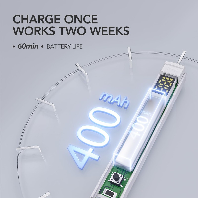 - 2 Weeks Battery Life: 400mAh capacity, charged once, works for up to 60 minutes continuously.