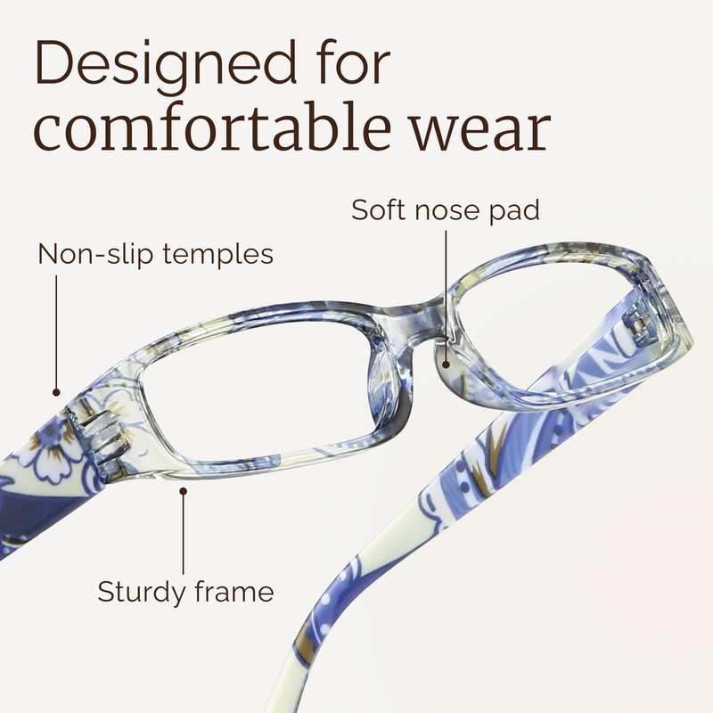 - EYE RELIEF & IMPROVED SLEEP: Engineered to reduce blurry vision and eye strain, these cheaters reading glasses for women help protect your eyes from the effects of extended screen time. These ladies reading glasses for women also aid in improving sleep quality by preventing blue light from disrupting your natural sleep cycle, helping you fall asleep faster and enjoy a more restful night.