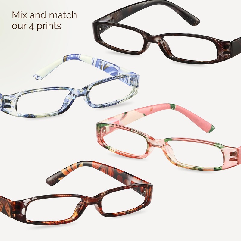 - BLUE LIGHT BLOCKING PROTECTION: These fashion readers for women offer UV400 protection, effectively blocking 100% of harmful blue rays from screens like computers, phones, and TVs. With this 4-pack of narrow womens reading glasses, you can enjoy reading on your tablet, scrolling through your phone, or watching TV without worrying about eye strain caused by prolonged screen exposure.