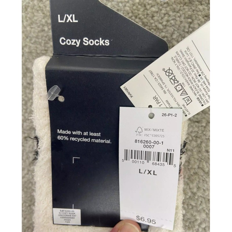 Gap NEW Gap Kids Recycled Fuzzy Crew Cozy Socks Unicorn face with gripper sole L/XL