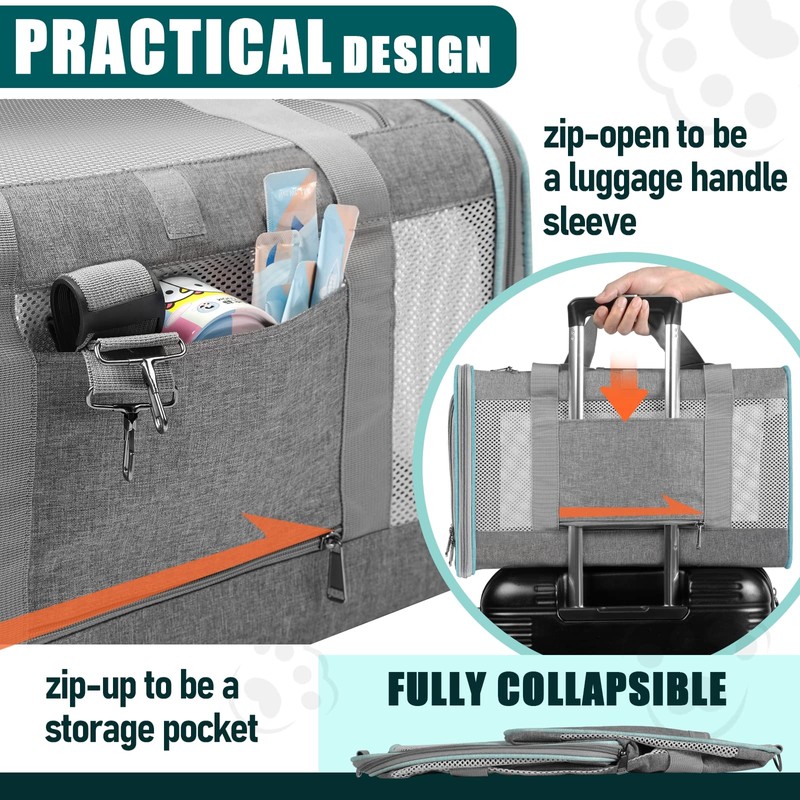 - 2 carrying ways to make transport easy and convenient. By hand with the padded top handle, or over the shoulder with the adjustable and detachable non-slip shoulder strap for custom mobility, making sure your furry friend is always within reach. Easy to secure on the car seat firmly by shoulder strap to keep pets restrained for safety while driving