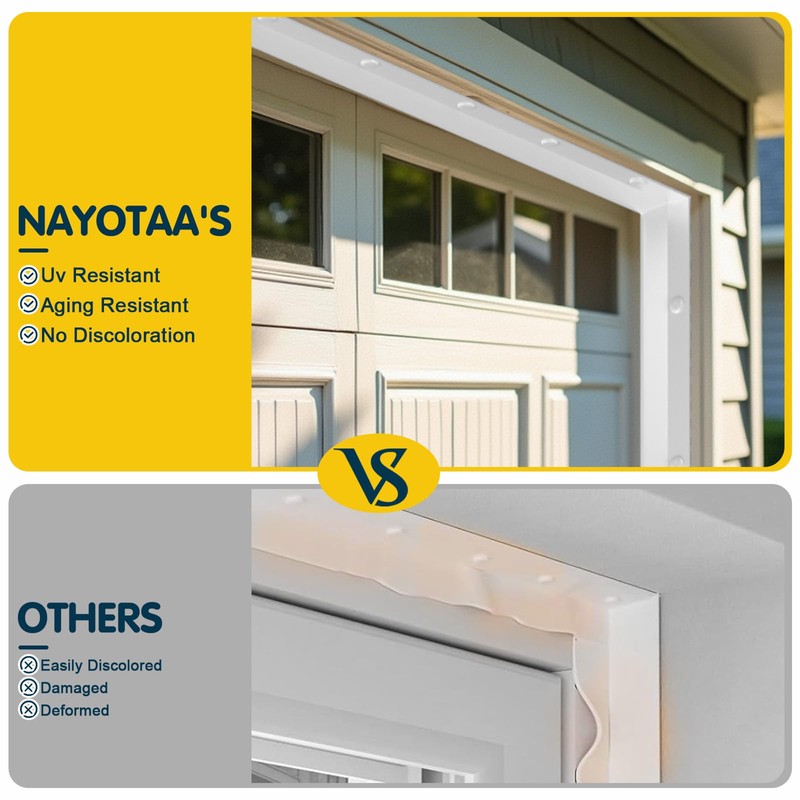 - Firmly mounted: Peel off the adhesive strip, stick it in the desired position and reinforce it with the included nails and lids to ensure that the garage door top seal is firmly fixed on the garage