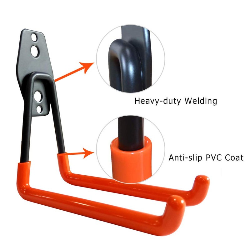 - 【ANTI-SLIP AND WATER RESISTANT】These garage hanger are anti-slip PVC coated to help grab on to items and keep them securely in place.