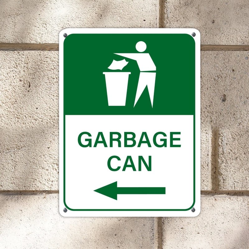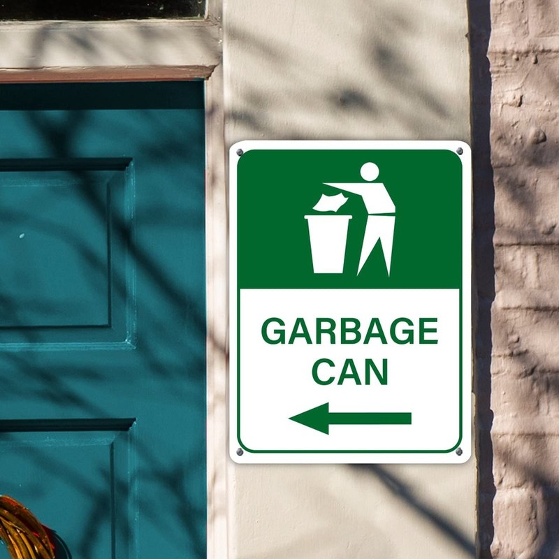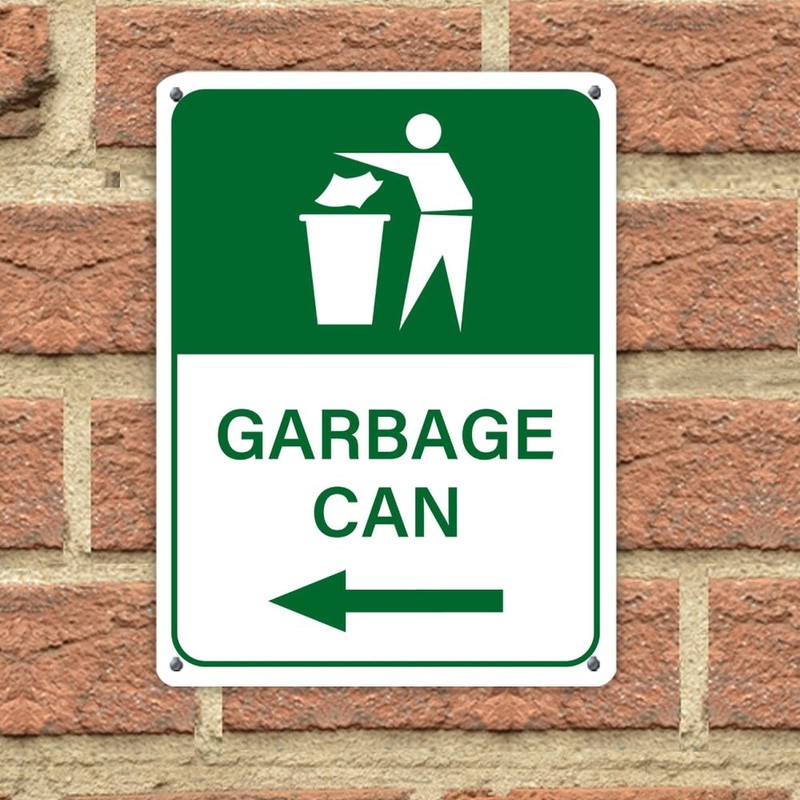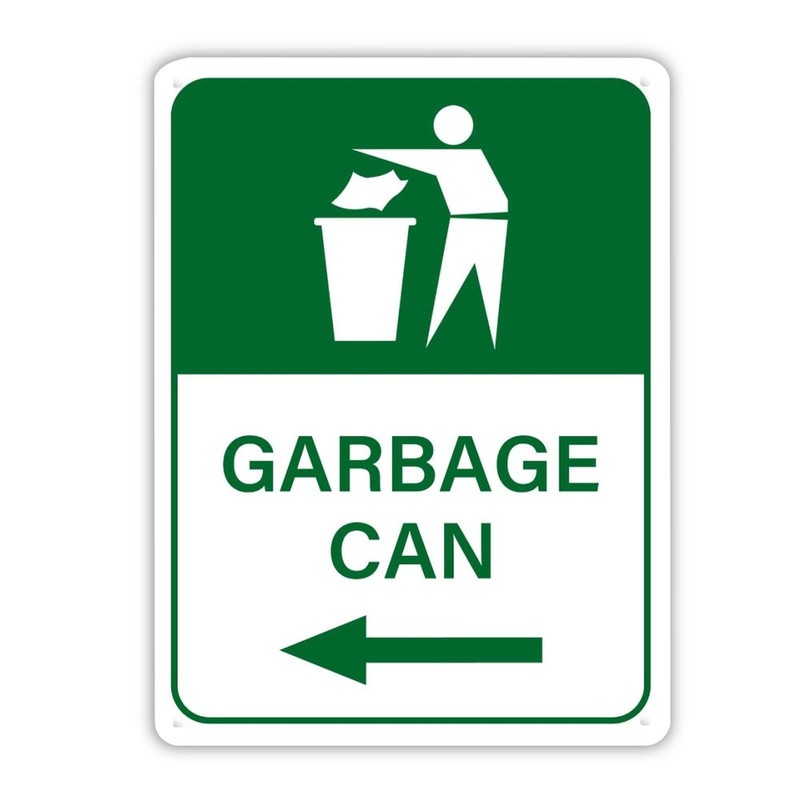 Garbage Can Tin Sign Durable Warning Wall Tin Sign Weather Resistant UV Protected Rust Free Metal Aluminum Sign Decoration for Trails Gardens Indoor Bar College Dorms 16x12in
