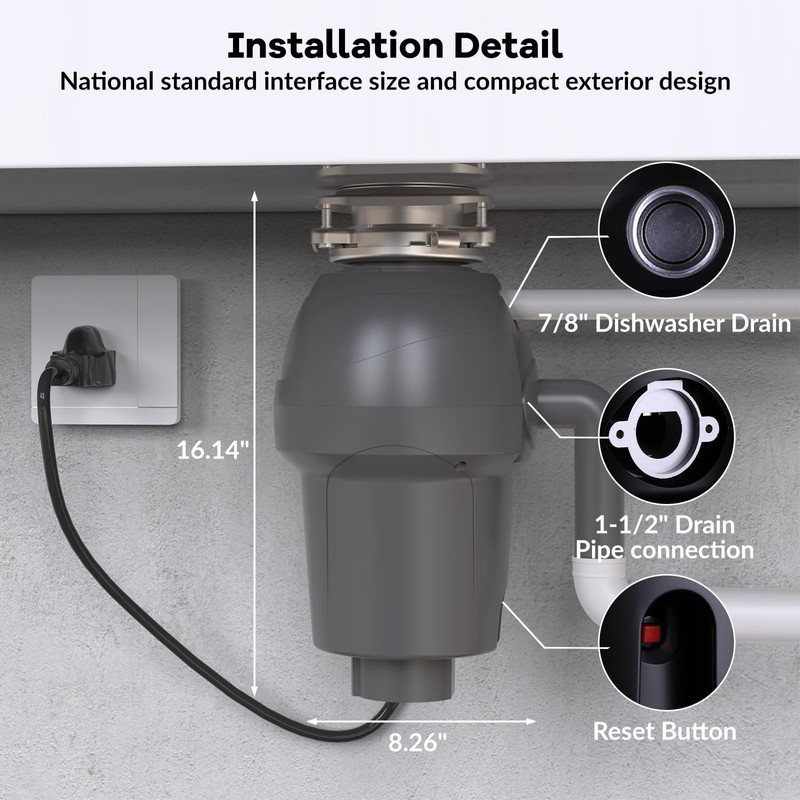 - EASILY REPLACE OLD EQUIPMENT: The food disposal utilizes the classic 3-Bolt Mount, This ensures that replacing an old unit is quick and convenient. Fit standard 1-1/2 inch sink openings. Additionally, it comes with a pre-installed power cord for effortless electrical connection.
