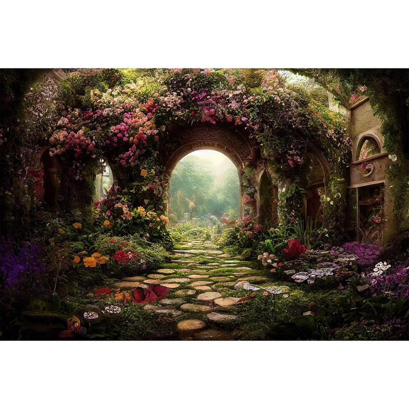 Garden Aquarium Background Mysterious Fantasy Garden with Archway and Flowers Terrarium Background Fairytale Garden Colorful Flowers Fish Tank Background Foggy Forest Reptile Background 36x18in