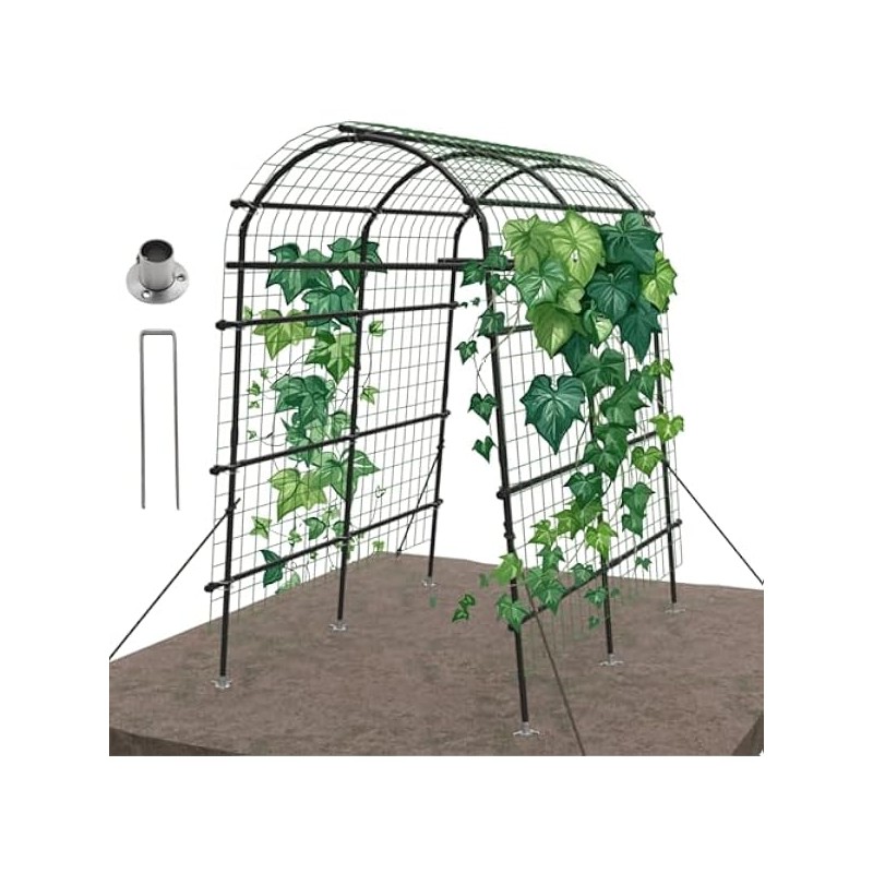 Garden Arch Trellis for Climbing Plants Outdoor 7ft Extra Tall with Flange Stainless Steel PE-Coated Lightweight Cucumber Arch Trellis|Garden Trellis Arch for Vegetables/Grape