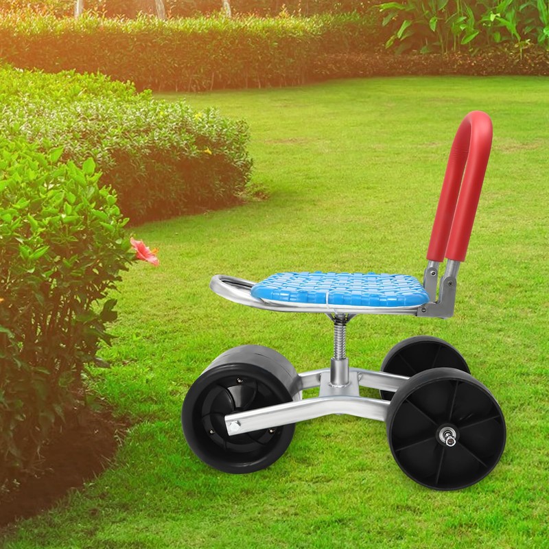 Garden Cart Rolling Garden Work Seat with Wheels Outdoor Lawn Yard Patio Cart with 360 Degree Swivel Seat & Adjustable Height Gardening Helper for Planting