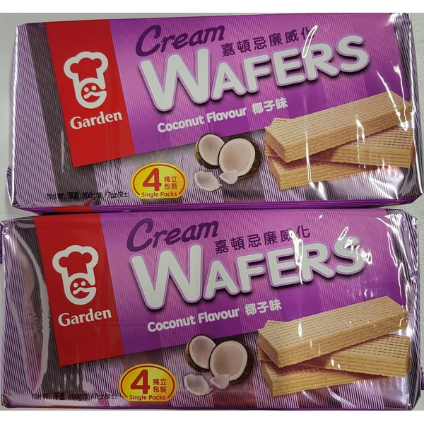 Garden Cream Wafers, Pack of 2, 7 oz each pack, Flavors of Chocolate, Vanilla, Strawberry, Cappuccino, Matcha, Coconut, Orange (Coconut)