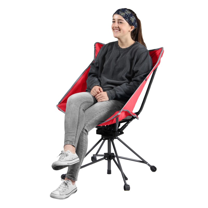 Garden Elements Tall Back Swivel Camping Patio Polyester Chair, Mesh Seat, Red