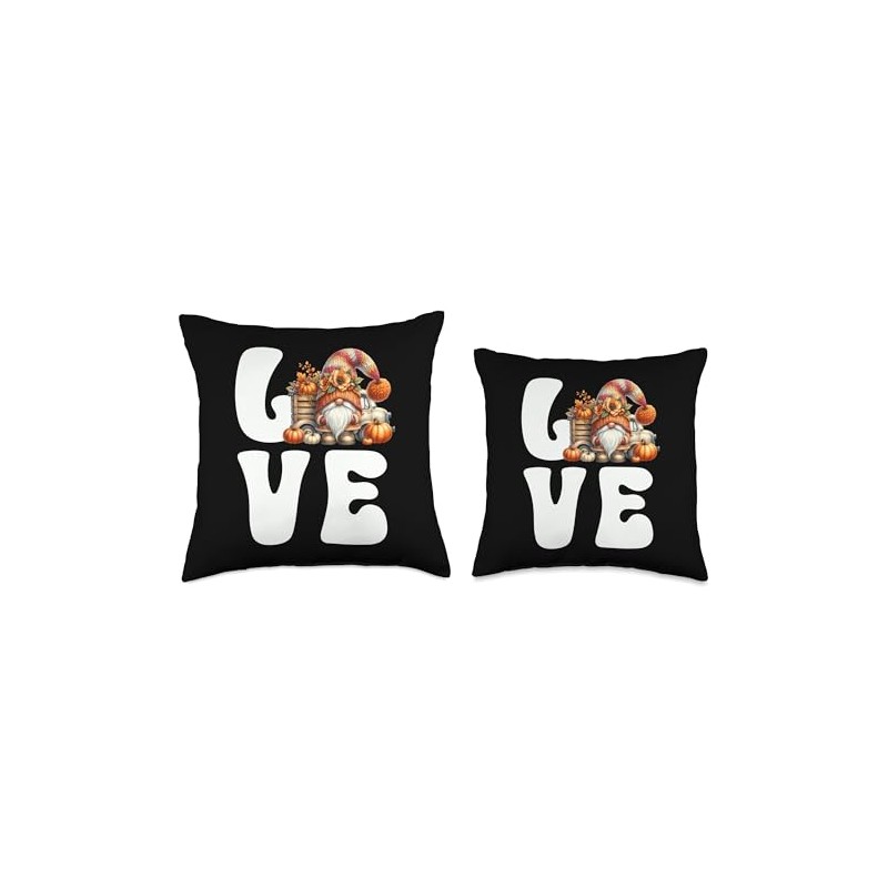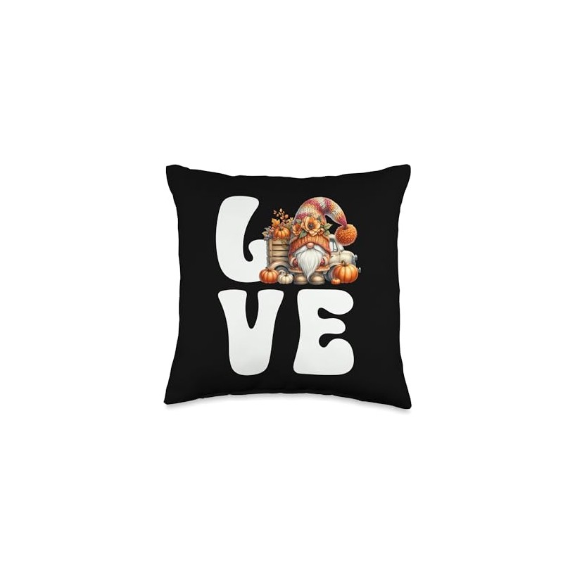 Garden Gnome Love Fall Graphic for Women with Pumpkin Truck Throw Pillow