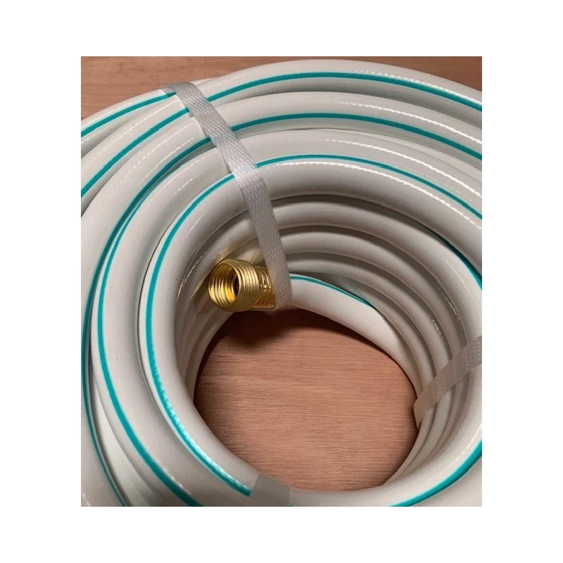 This 75 ft garden hose adopts a three-layer reinforced structure design, making it very durable, and the sturdy structure ensures long-lasting performance. This garden hoses have outstanding flexibility and will not kink. When bending at corners or passing through narrow areas, it will also unfurl smoothly without any annoying twisting. These hoses are made of innovative PVC materials, which are lighter, 30% lighter than traditional rubber hoses, making them easy to move, use, and store. The inner diameter of the water hose is 1/2 inch. The standard 3/4" threaded connector size makes it ideal for typical garden faucets in the US. The rotatable female hose end is equipped with a rubber washer to enhance leak proof performance. This water hose supports working pressure of 120 psi and burst pressure 300psi.