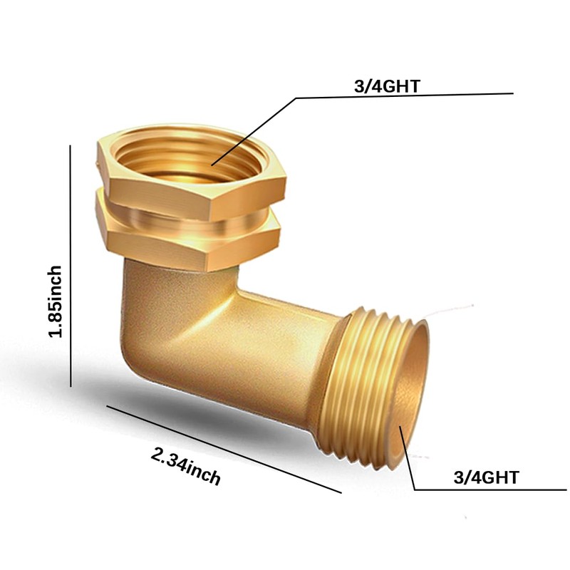 - US Standard: Standard 3/4" GHTthreaded,The 90 degree Angle is designed, relieve the strain of the hose hanging off your faucet,Keep the water flowing,3/4" Water hose connector perfect for garden, RV, lawn. Elbow adapter helps connect a hose to an appliance without bending, kinking or straining the hose.