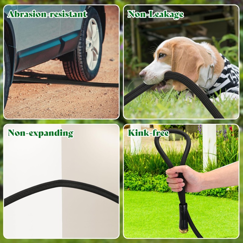 - 【Upgraded Lightweight Water Hose】New non-expandable garden hose made of flexible PE inner tube and waterproof & wear-resistant fabric skin, 50% lighter than traditional garden hoses while maintaining durability.