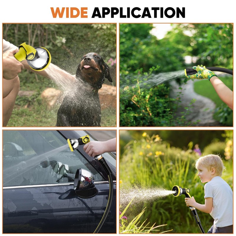 Garden Hose Set 200FT Heavy-Duty Premium 5/8' Rubber 3-Layer Water Hose - Innovation Flexible Hybrid Lightweight Water Hose with 10 Pattern Spray Nozzle, Full Brass Male to Female Fitting | Dkenicor