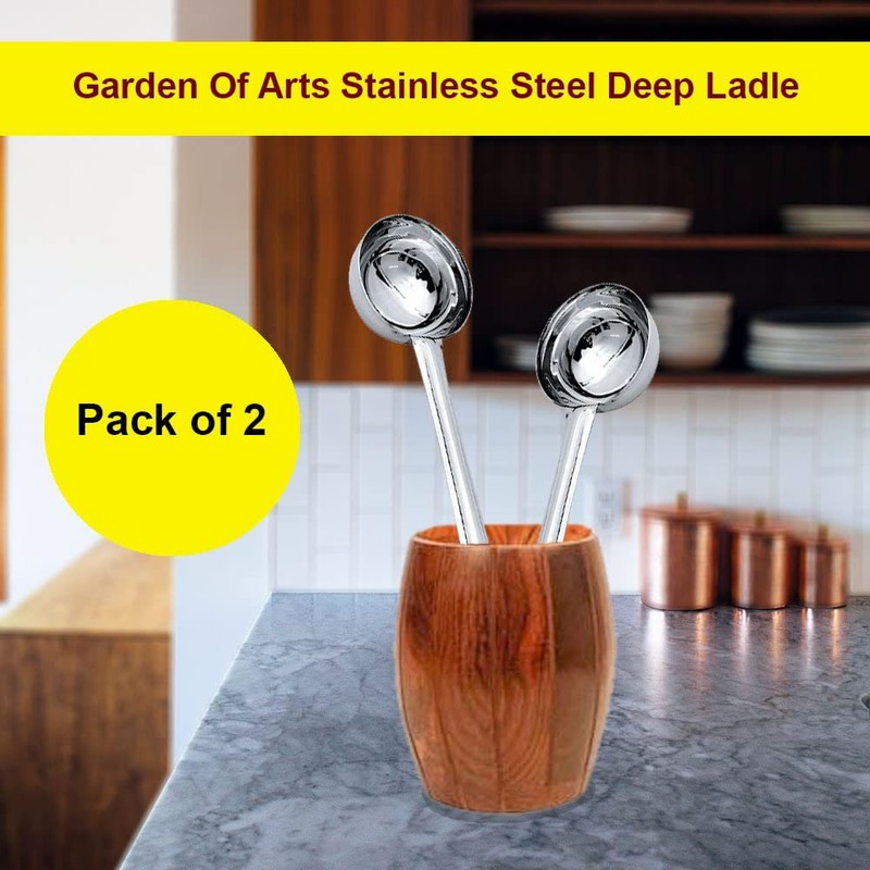 Garden Of Arts Stainless Steel Deep Ladle | Soup/Milk Ladle/Karchi | Cooking and Serving Spoon for Kitchen (Pack of 2, Deep Ladle)
