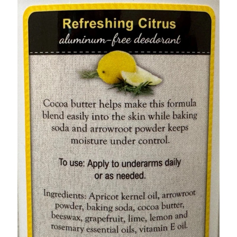 Garden Path Soap CITRUS ALUMINUM FREE DEODORANT - Blend of Lime Grapefruit Lemon & Rosemary