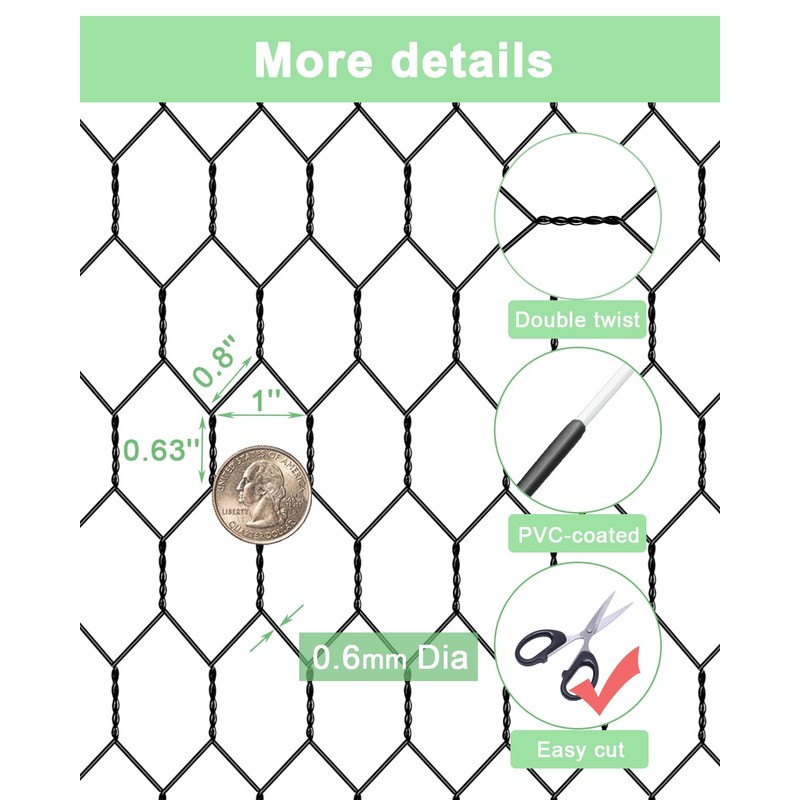 - Galvanized & PVC-Coated for Extra Durability: Our upgraded chicken wire is made from hot-dipped galvanized iron and coated with a layer of PVC plastic, offering withstand for elements