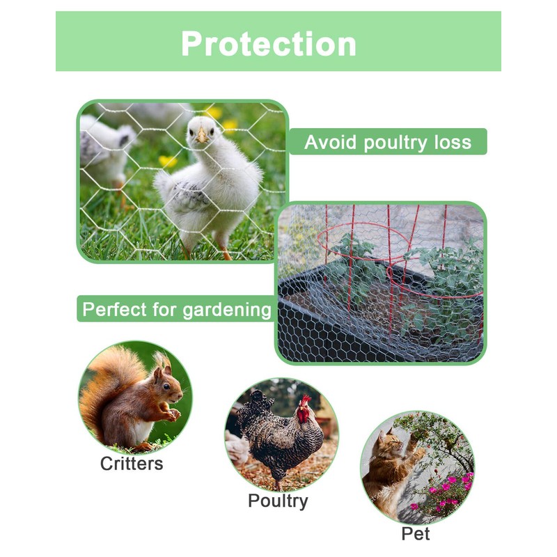 • Galvanized Chicken Wire: NO lead, made of Hot-dipped galvanized, more durable than nylon or plastic poultry mesh netting, and effectively deal with the chew of critters.