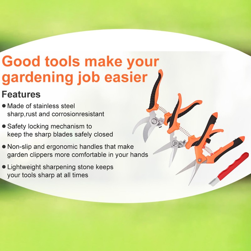 - Our pruning shears for gardening come equipped with three different blades and a grindstone, offering a versatile solution for a variety of general pruning tasks.