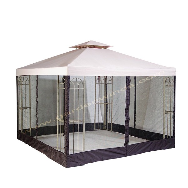 REPLACEMENT CANOPY ONLY. MOSQUITO NETTING SET NOT INCLUDED. SOLID PRIVACY CURTAINS NOT INCLUDED. METAL STRUCTURE NOT INCLUDED. This is a REPLACEMENT CANOPY for the Classic S-577-1 Gazebo. This canopy is made of RipLock fabric, 350 denier. This gazebo was originally sold at Lowes. Replacement canopy ONLY. Metal structure NOT included. Color: Beige (may differ from the original). Manufacturer's model number: S-577-1, C-577-1; SKU number: 225175. Signature indicators: Plant shelves at each corner; Sunburst arch design on top of each panel. Fabric: UV treated, water resistant, CPAI-84 fire retardant