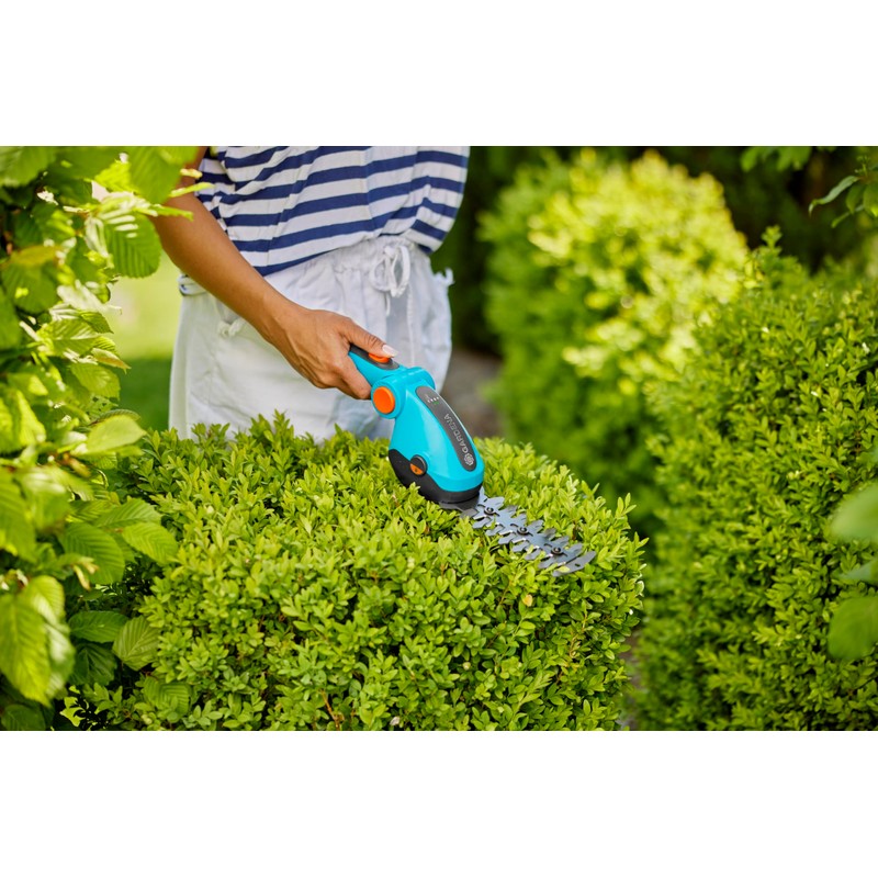 Gardena 9888-56 Battery Grass and Shrub Shears - Cordless, Handheld Shears for Trimming Lawn Edges or Small shrubs and Bushes, 80 Min Run time, Replaceable Quality Non Stick Blades, Turqoise