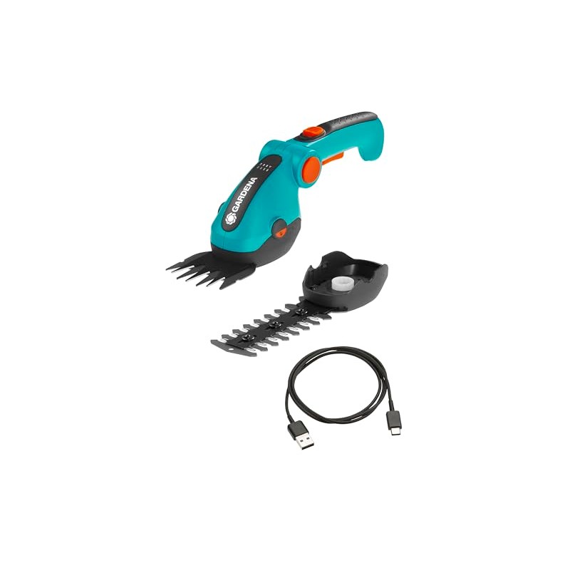 - Items delivered: 1x GARDENA Battery Grass Shears, with 3 in cutting width, extra Shrub Blade, Li-Ion Battery, 3.5 h charging time, 80 minute operating time