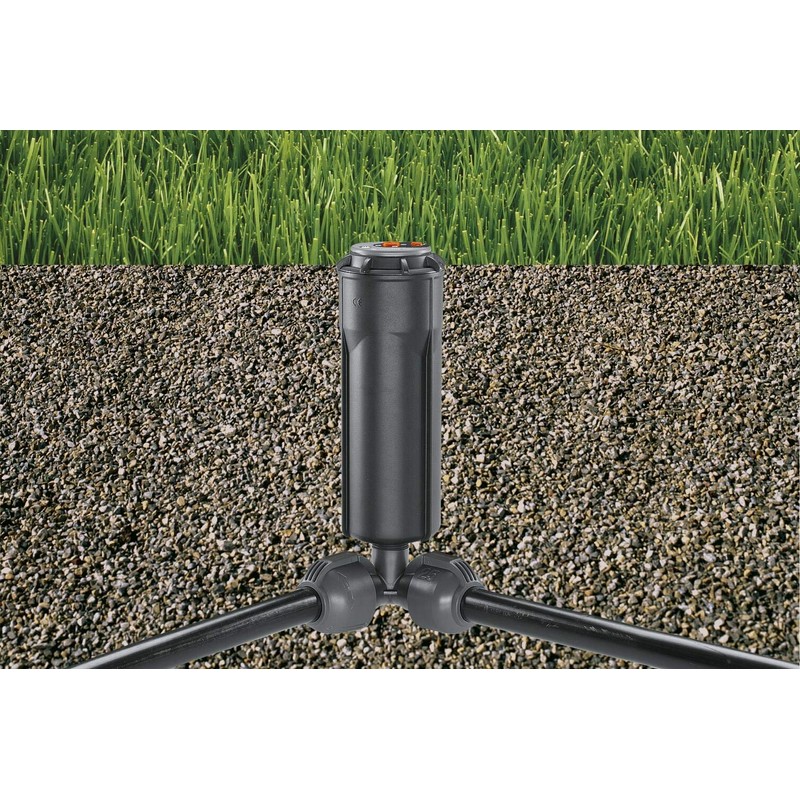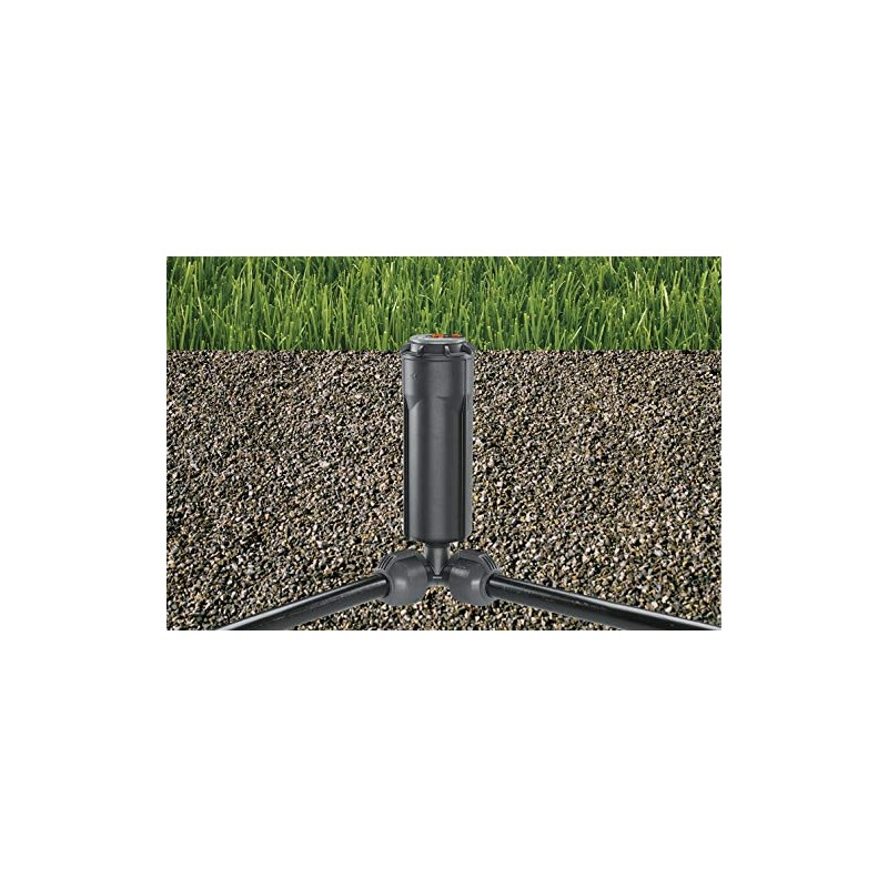 - Compatible: angle piece can be used with pop-up sprinkler S 80 (item no. 1569-29), turbine pop-up sprinkler T 100 (item no. 8201-29) and with turbine pop-up sprinkler T 200 (item no. 8203-29) in the corner area