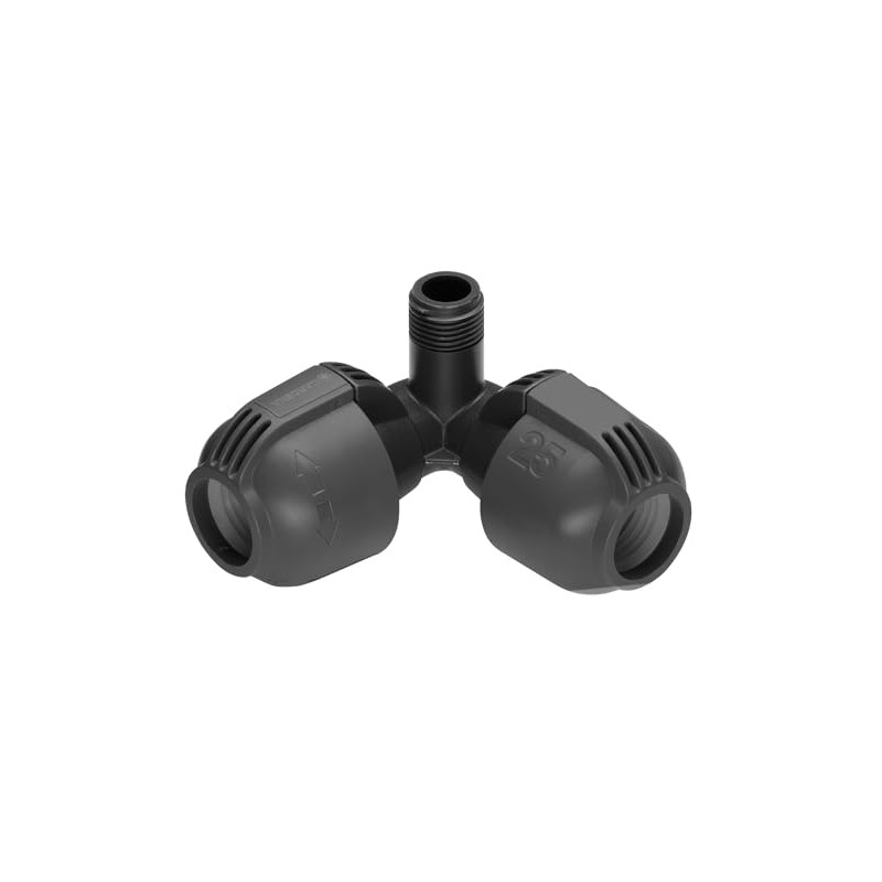 - Box contents: 1 x Gardena angle piece with 25 mm x 1/2 inch male thread